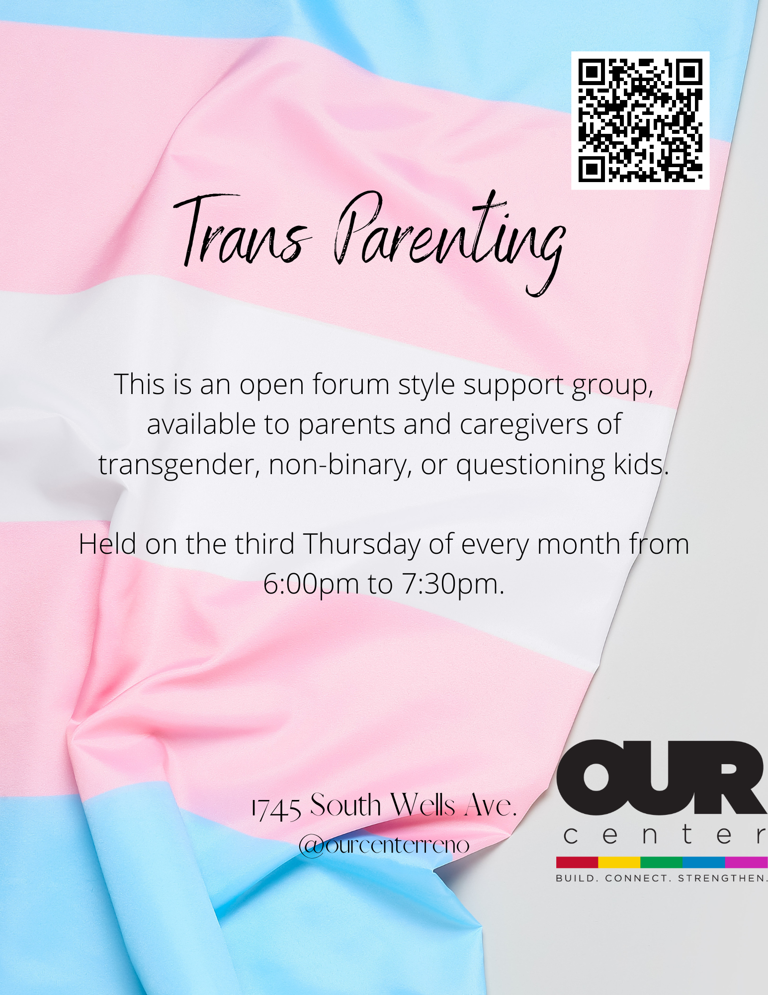 This is an open forum style support group, available to parents and caregivers of transgender, non-binary, or questioning kids. Held on the third Thursday of every month from 6:00pm-7:30pm.