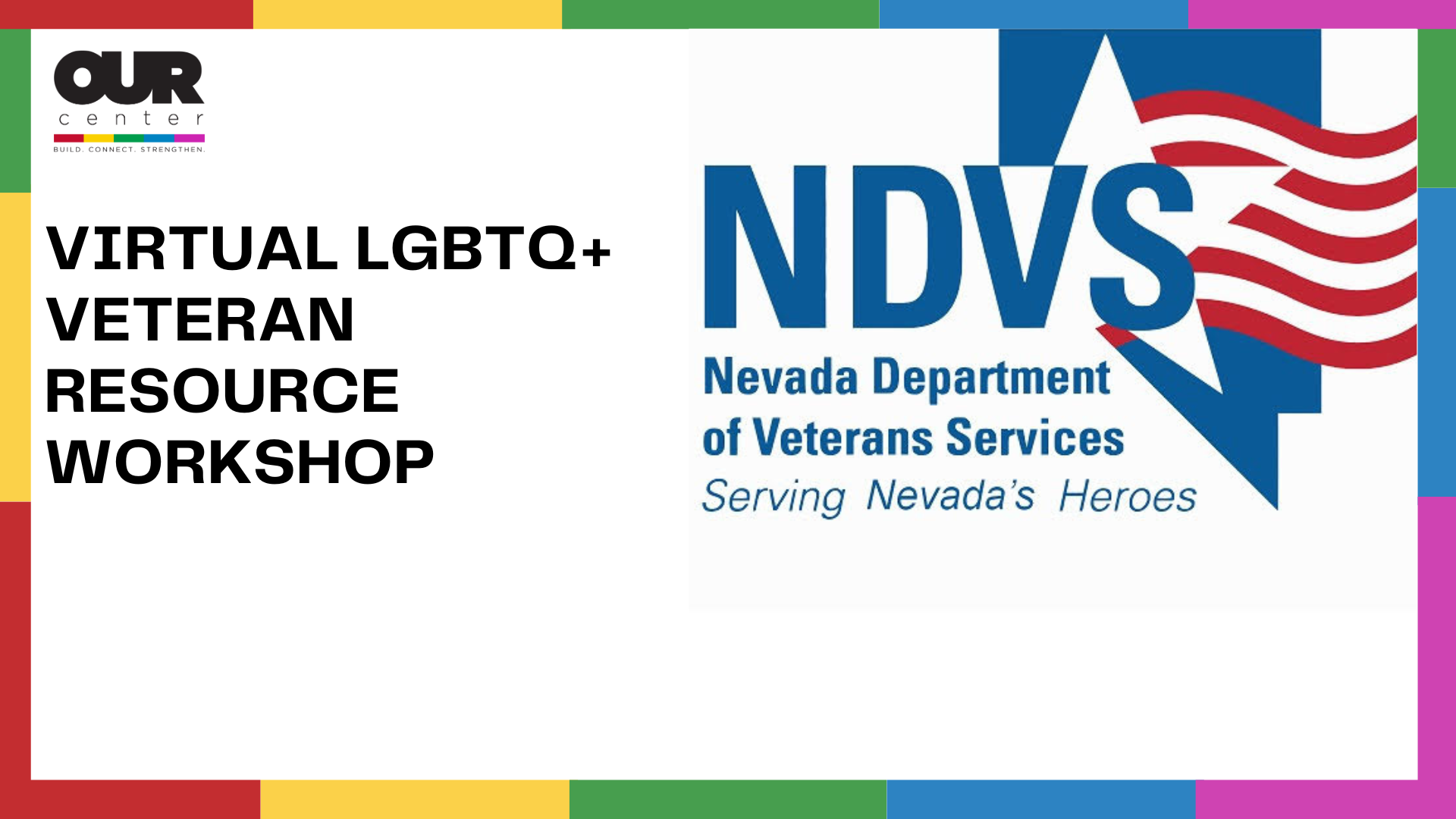 In partnership with Our Center, NDVS will present information during a FREE Virtual LGBTQ+ Veteran Resource Workshop that will focus on topics of interest to gender and sexually diverse veterans.