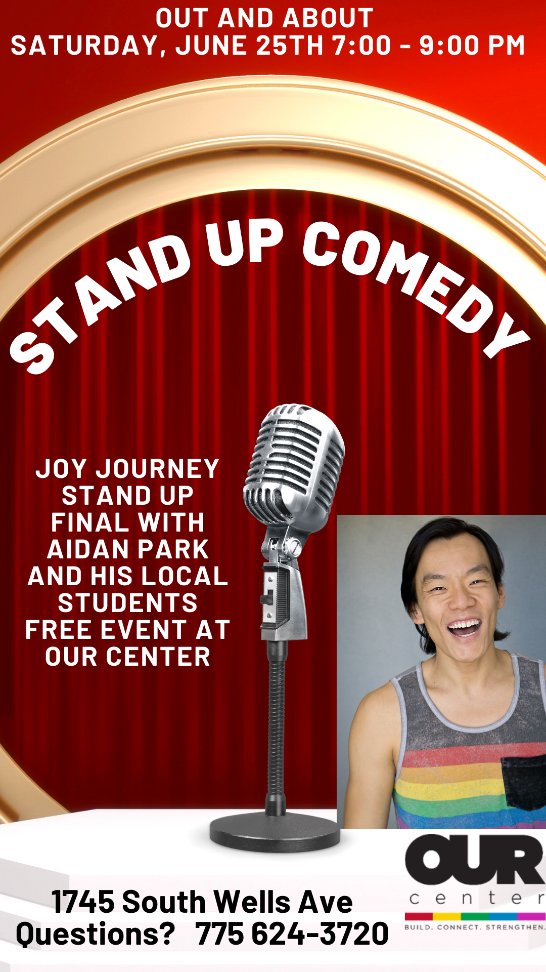 Joy Journey with Aidan Park and local comics. Free Event at Our Center. Saturday, June 25: 7-9 pm. |