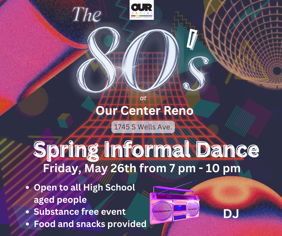 Join us for a night of queer fun and dancing! Open to all high school aged folks. Beverages and snacks provided. Absolutely no substances allowed. 80's theme! |
