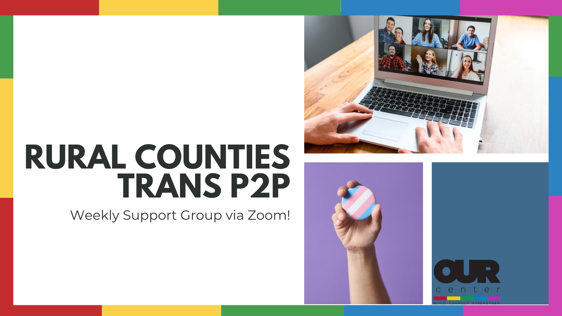 For our communities members in Northern Nevada's rural counties, Our Center hosts a weekly Trans P2P Support Group. This group is free and is open to all adults via Zoom on Fridays from 3:00-4:00! Email Stacey@OurCenterReno.org for the Zoom link!